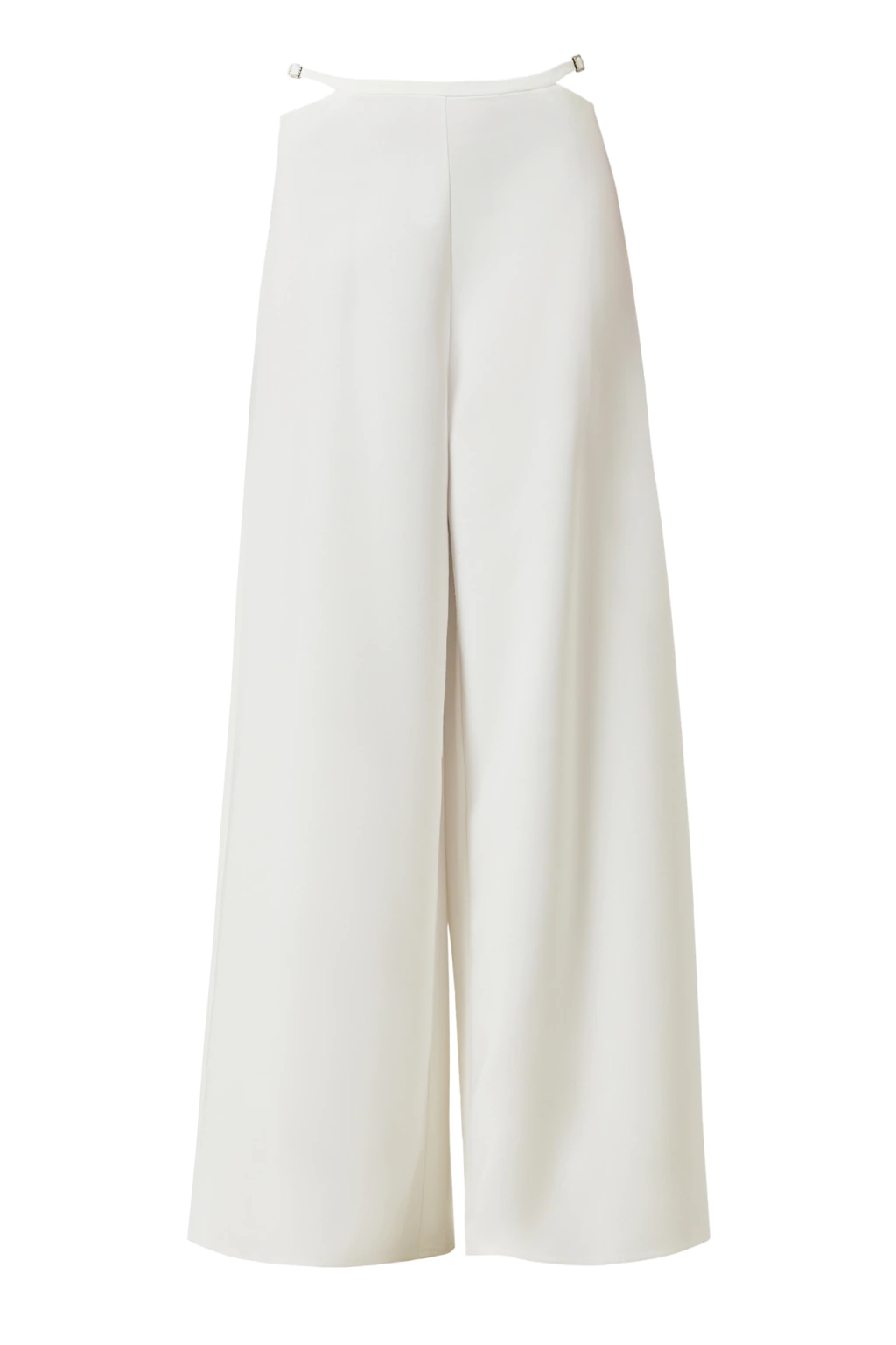 Este pantalón palazzo ofrece una silueta amplia y fluida, con presillas en la cintura que añaden un toque funcional y moderno. Las sustracciones en la cintura ayudan a realzar la figura, creando una forma estilizada y elegante.