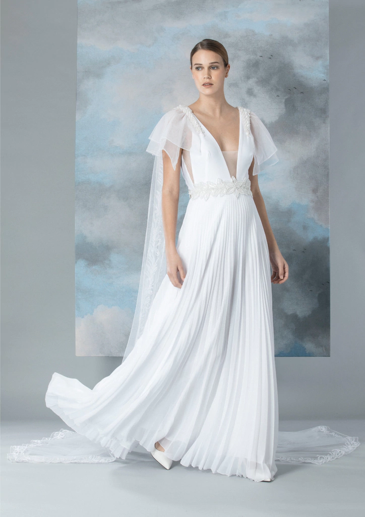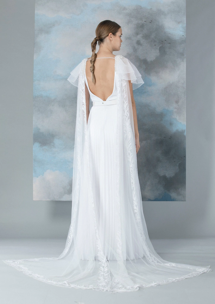Par de Alas de tull duro con bordado de hilo y realce salpicado de cristales sobre el bordado.