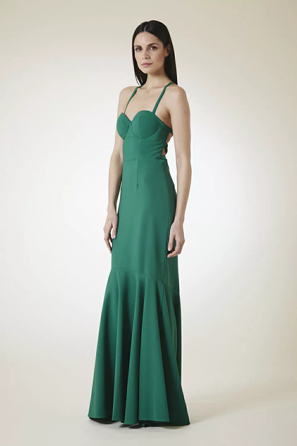 Vestido largo de crepé, una prenda elegante y con mucho estilo. La taza Dolce ofrece un ajuste perfecto, mientras que la espalda regulable permite un ajuste personalizado. La falda corte sirena añade un toque de glamour, asegurando que luzcas radiante en cualquier evento especial.
