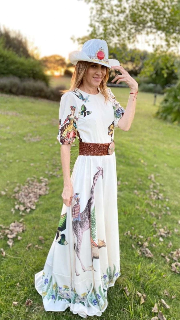 Este vestido es una prenda versátil y femenina, ideal para quienes buscan combinar estilo y comodidad. Su diseño de falda amplia con estampado exclusivo aporta un toque único y fresco, perfecto para diversas ocasiones.