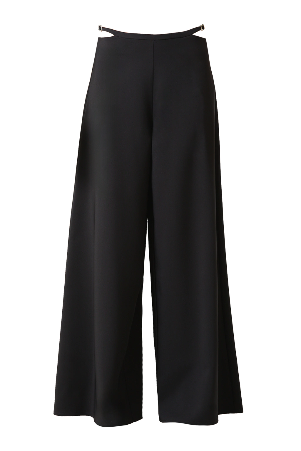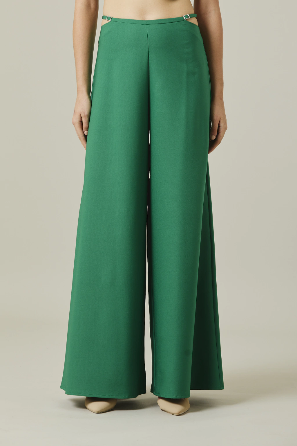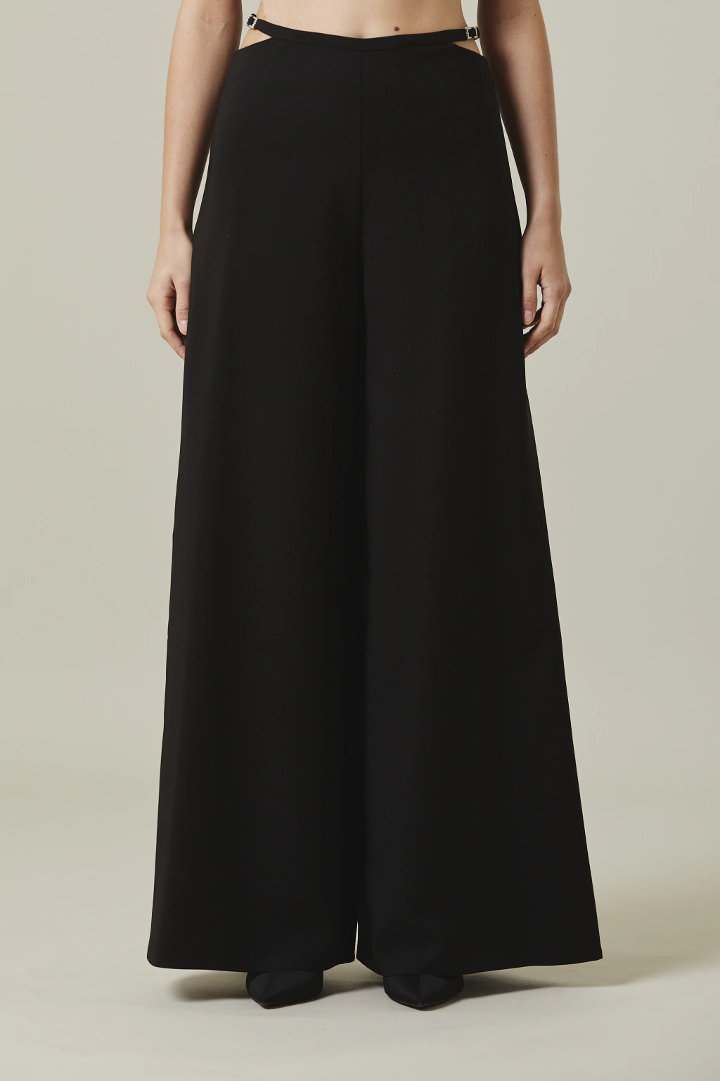 Este pantalón palazzo ofrece una silueta amplia y fluida, con presillas en la cintura que añaden un toque funcional y moderno. Las sustracciones en la cintura ayudan a realzar la figura, creando una forma estilizada y elegante.