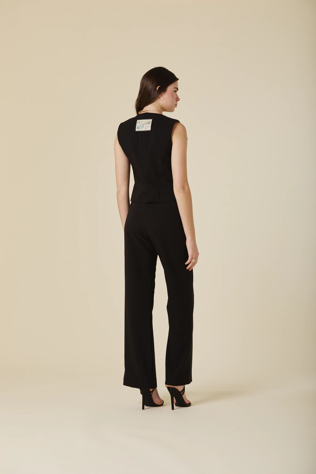 Este pantalón sastrero recto forreria estampada fusiona sofisticación y modernidad con su tiro alto y cintura cruzada, logrando una silueta estilizada y elegante. Su diseño versátil lo convierte en una opción ideal tanto para eventos formales como para incorporar un toque refinado a looks diarios. La confección en crepe sastrero garantiza estructura y comodidad, asegurando un ajuste impecable.