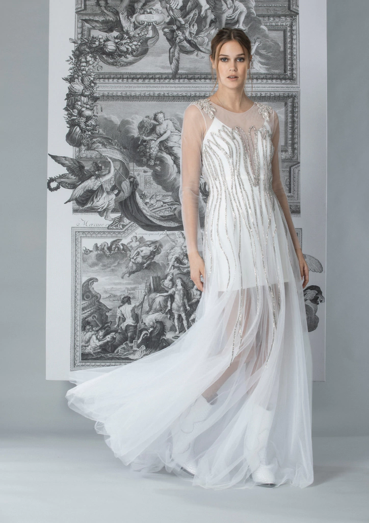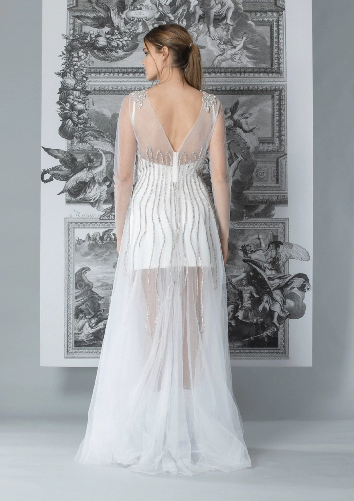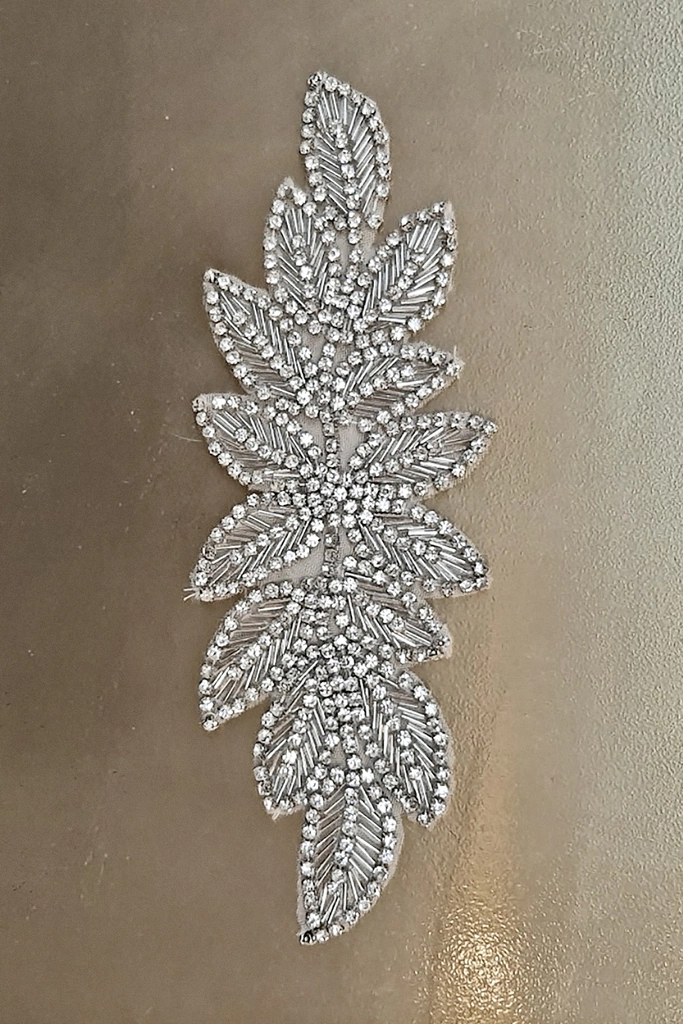 Charretera con forma de hojas, hecha de strass y canutillo largo.