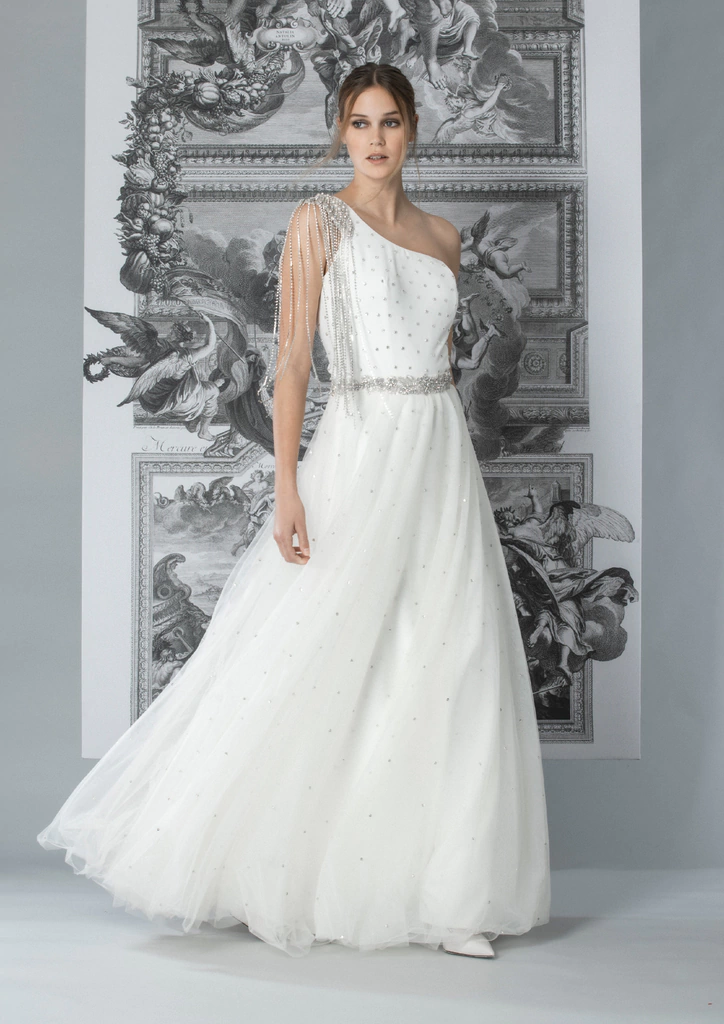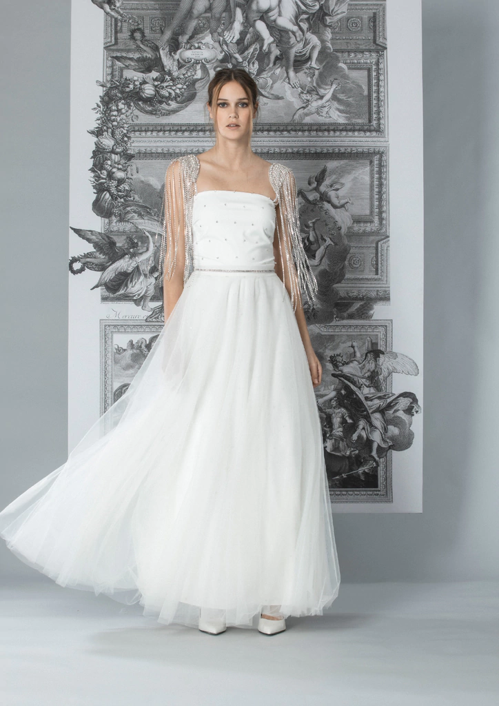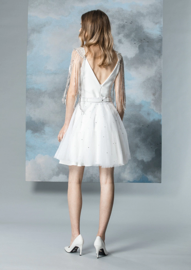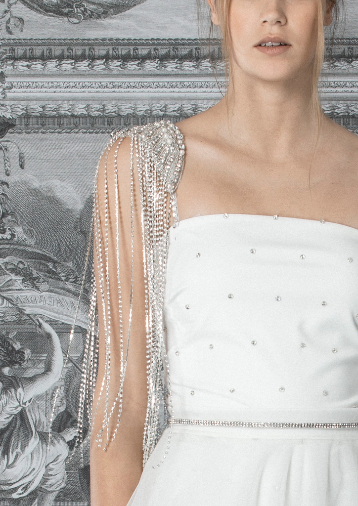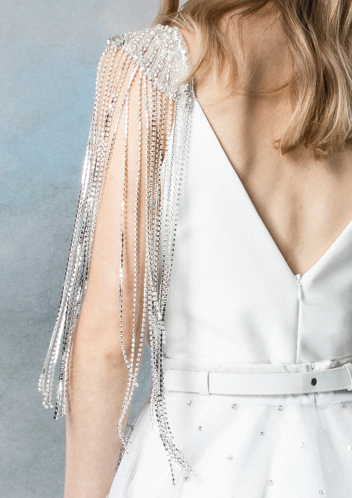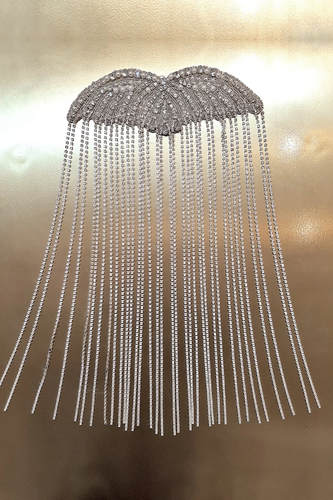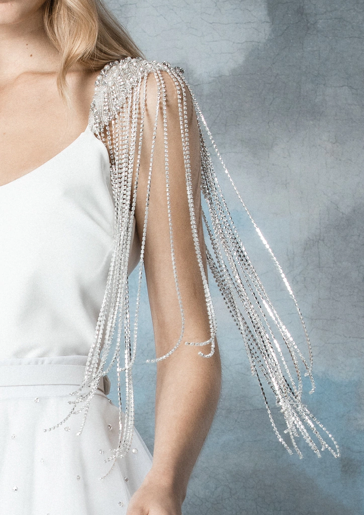 Charretera en forma de alas con lluvia de strass colgante.