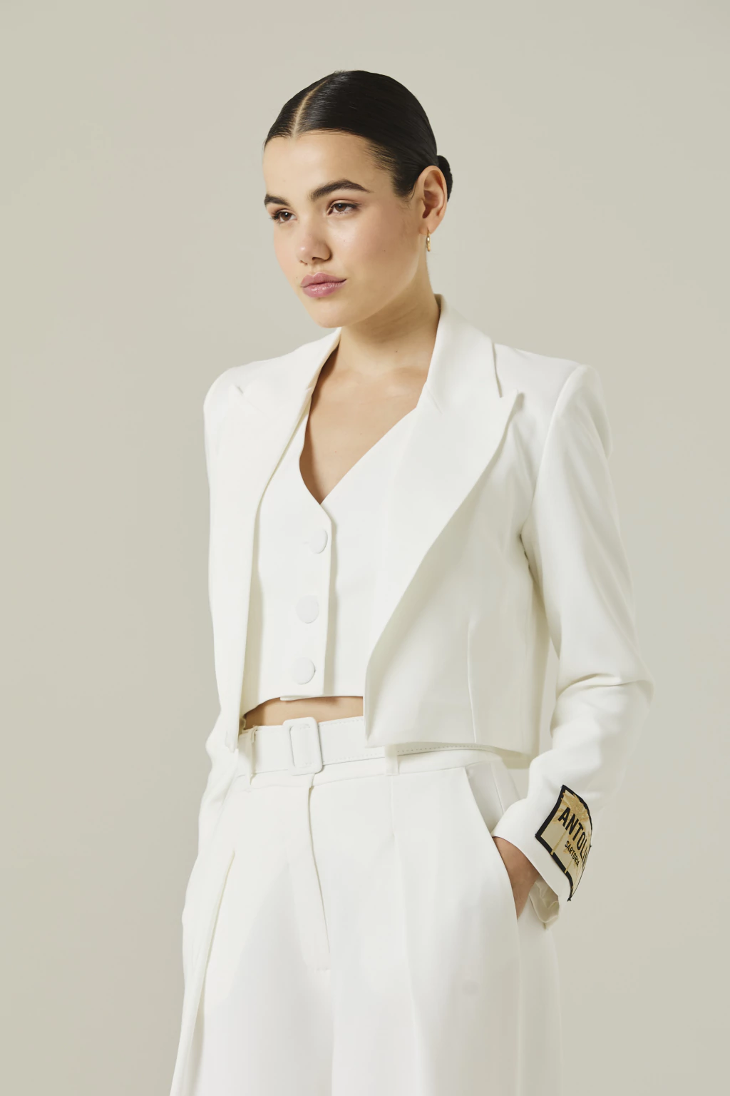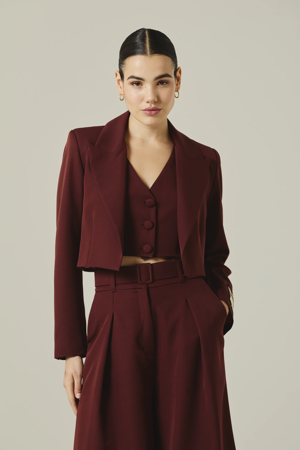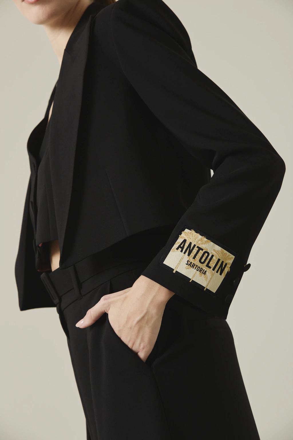 Este spencer, confeccionado en creppe sastrero, combina elegancia y modernidad en un diseño clásico. Su forrería estampada añade un toque exclusivo y distintivo, perfecto para quienes buscan destacar con estilo.