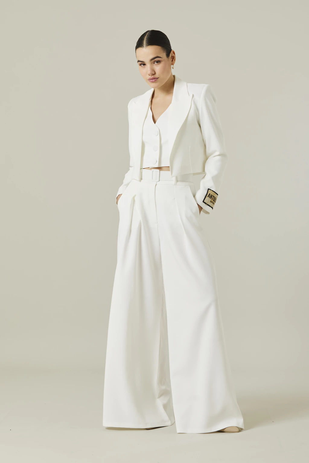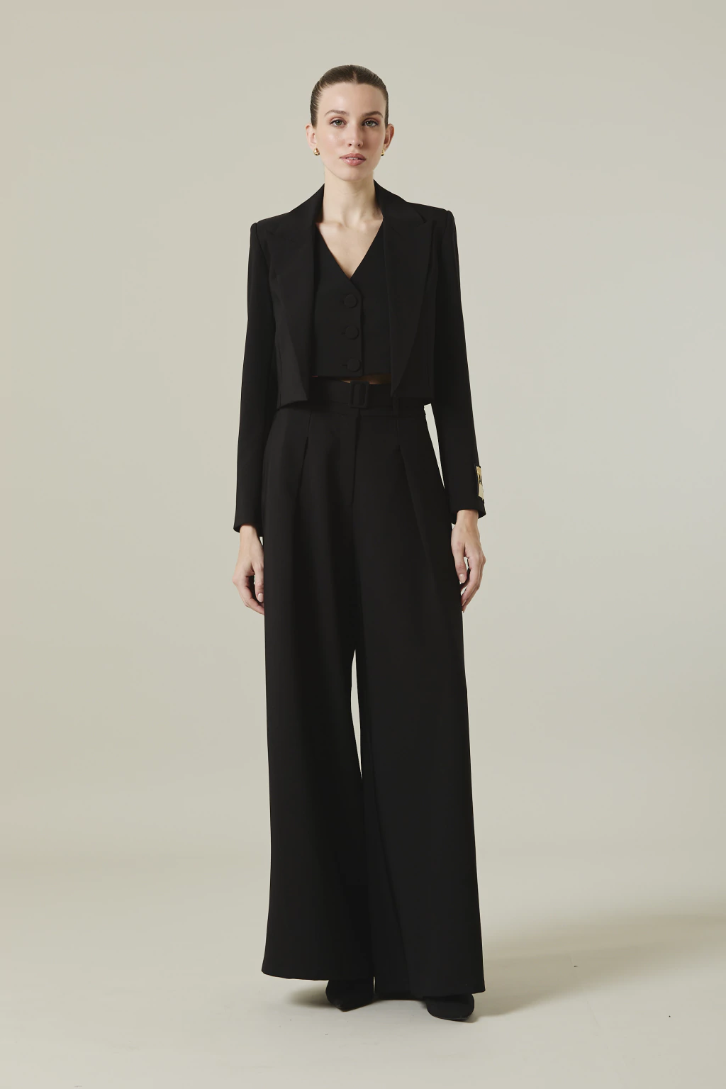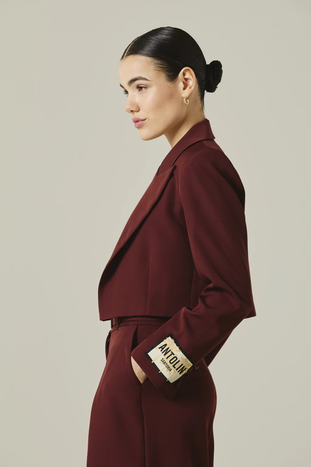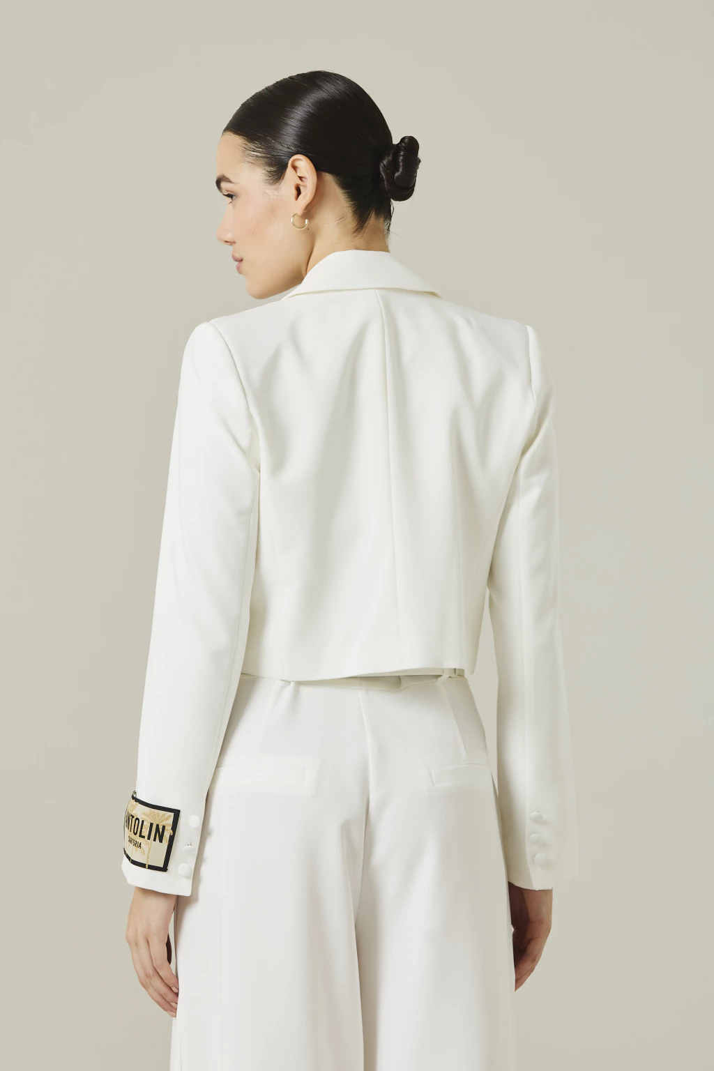 Este spencer, confeccionado en creppe sastrero, combina elegancia y modernidad en un diseño clásico. Su forrería estampada añade un toque exclusivo y distintivo, perfecto para quienes buscan destacar con estilo.