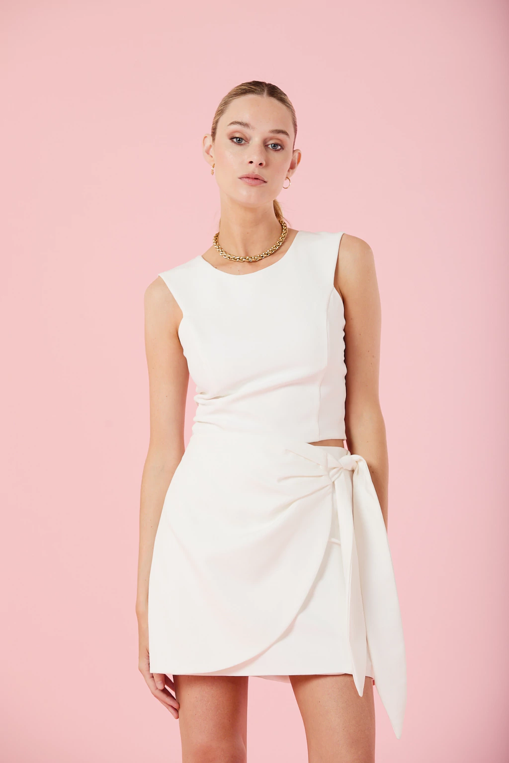 Este top fusiona la precisión del creppe sastrero con la sensualidad del tul elastizado, logrando una silueta contemporánea y femenina. El contraste de texturas realza su carácter único, mientras que el diseño entallado con espalda en tul aporta un guiño sutil de audacia. Una prenda versátil para elevar cualquier look con actitud y distinción.