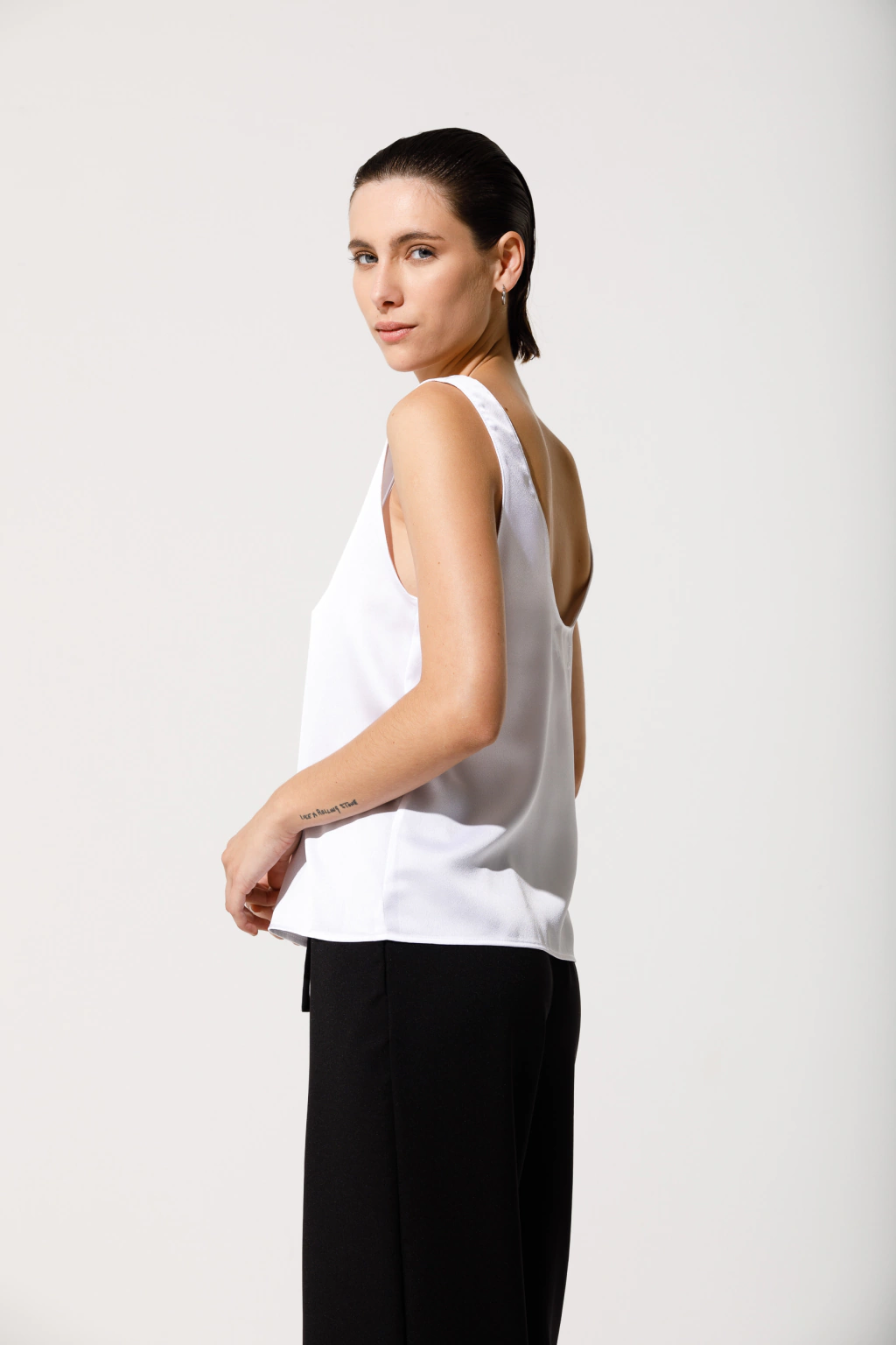 Blusa musculosa wide fit de creppe santinado. versatil y clasico a la vez.
