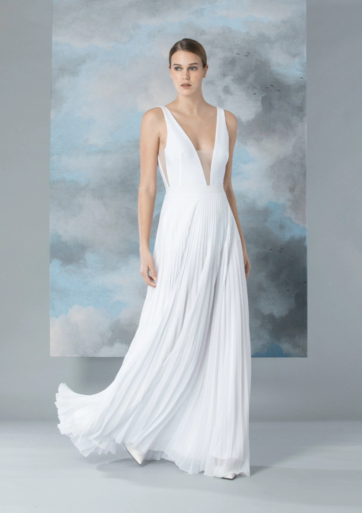 La modelo usa talle 1, y mide 1,75.