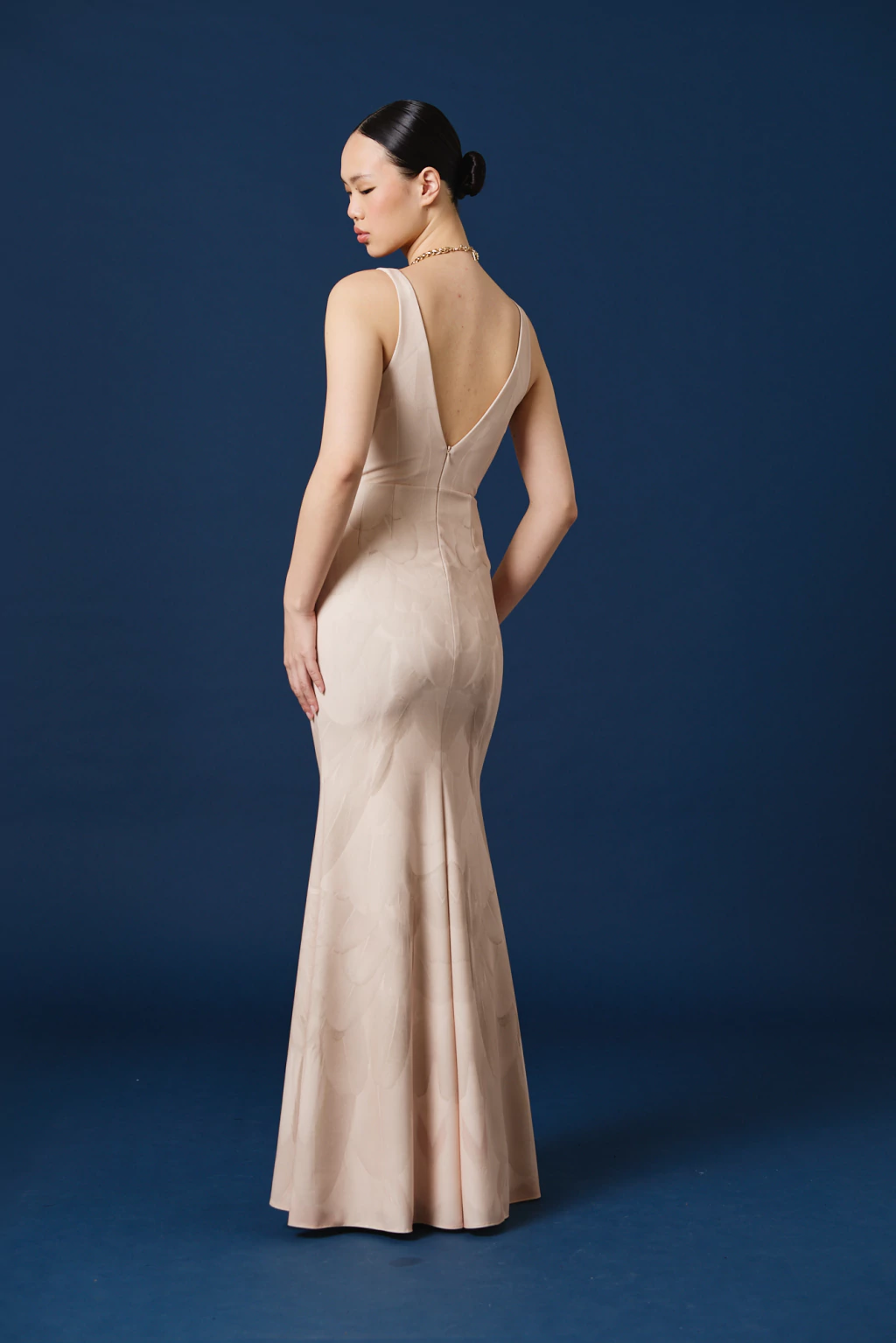 - Talle y Moldería: Corte al cuerpo con falda evasé. La modelo mide 1,71 m y usa talle 1.